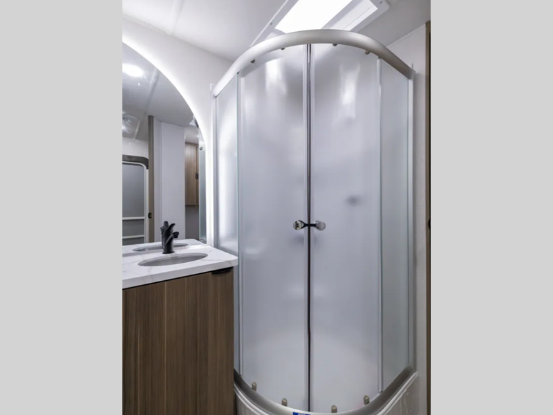 Sleeps 4 Length 23 ft 3 in Ext Width 8 ft Ext Height 11 ft 3 in Hitch Weight 695 lbs Dry Weight 4513 lbs Cargo Capacity 4982 lbs Fresh Water Capacity 54 gals Grey Water Capacity 43 gals Black Water Capacity 43 gals Furnace BTU 20000 btu Available Beds Queen Refrigerator Type Extra Large Black Glass 12V Convection Cooking Yes Cooktop Burners 3 Number of Awnings 1 Garage Size 10 ft 3 in LP Tank Capacity 20 lbs Water Heater Type On Demand Awning Info 14' Power w/Adjustable Legs and LED Light Strip Axle Count 2 Number of LP Tanks 2 Shower Type Neo-Angled Similar Floorplans