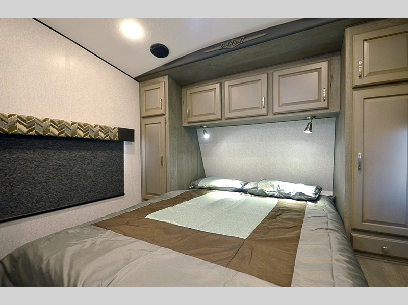 Sleeps 6 Length 30 ft 2 in Ext Width 8 ft 6 in Ext Height 13 ft Interior Color Mirage, Desert Palms, Solitaire Azul Hitch Weight 1512 lbs GVWR 12000 lbs Dry Weight 8595 lbs Cargo Capacity 3405 lbs Fresh Water Capacity 100 gals Grey Water Capacity 47 gals Black Water Capacity 50 gals Tire Size ST235/80R16 Furnace BTU 30000 btu Generator Onan 4.0 Fuel Capacity 40 gals Number Of Bunks 1 Available Beds Queen Refrigerator Type 12V Stainless Steel Refrigerator Size 10 cu ft Cooktop Burners 3 Number of Awnings 1 Axle Weight 7083 lbs Garage Size 14 ft 10 in LP Tank Capacity 60 lbs Water Heater Capacity 10 gal Water Heater Type DSI Gas/Electric Quick Recovery AC BTU 13500 btu TV Info LR 32" LED Smart TV Awning Info 14' 12V w/ Adjustable Pitch Axle Count 2 Shower Type Tub/Shower Combo Similar Floorplans