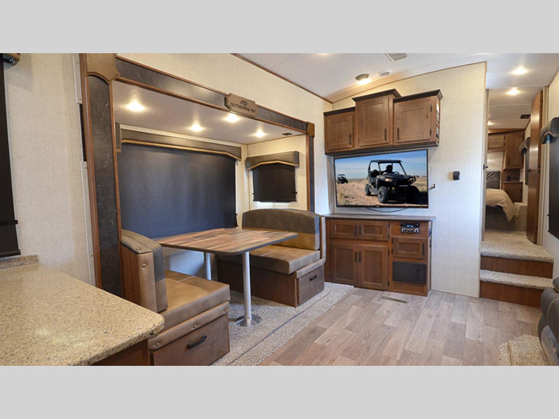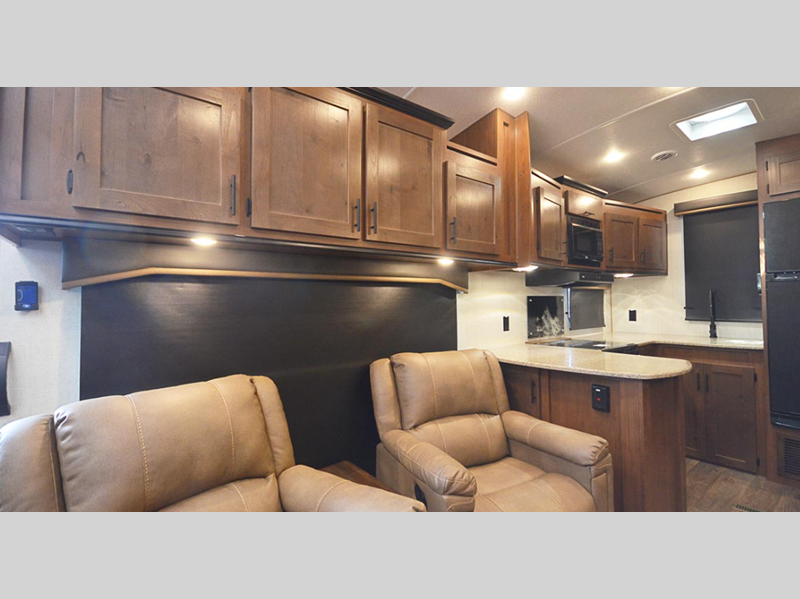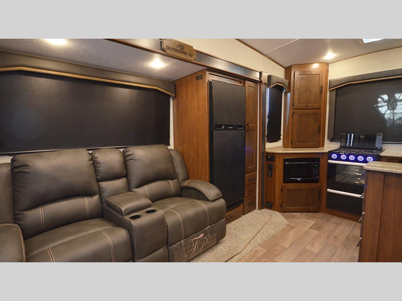 Outdoors RV Glacier Peak Mountain Series fifth wheel F28RKS highlights: Lounge ... more about Glacier Peak Mountain Series F28RKS