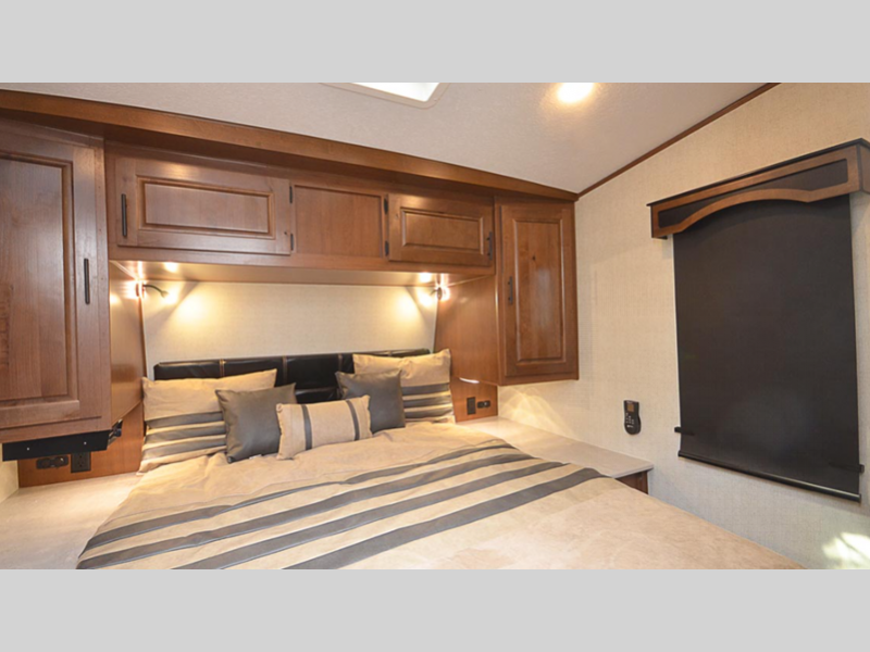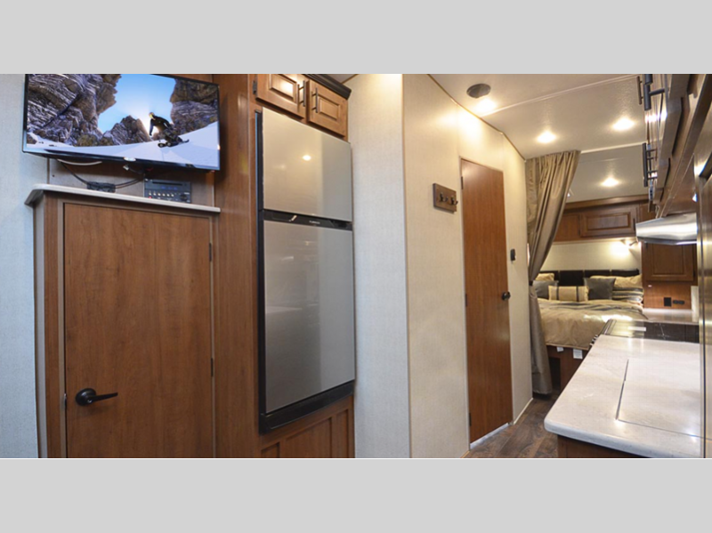 Sleeps 5 Length 30 ft 1 in Ext Width 8 ft 4 in Ext Height 13 ft 2 in Interior Color Black Diamond Hitch Weight 1400 lbs GVWR 12995 lbs Dry Weight 9230 lbs Cargo Capacity 4245 lbs Fresh Water Capacity 100 gals Grey Water Capacity 65 gals Black Water Capacity 40 gals Tire Size LT235/85/16G Furnace BTU 35000 btu Generator Cummins Onan 4K On-Board Gas Fuel Capacity 40 gals Number Of Bunks 1 Available Beds RV Queen Refrigerator Type Off Grid 12V Refrigerator Size 10 cu ft Number of Awnings 2 Axle Weight 6800 lbs Garage Size 9 ft 9 in LP Tank Capacity 60 lbs Water Heater Capacity 10 gal Water Heater Type LP/110V DSI AC BTU 15000 btu TV Info LR 32" LED HDTV Awning Info 17' Electric w/LED Light Strip, Rear Axle Count 2 Shower Type Neo-Angled Electrical Service 30 amp Similar Floorplans