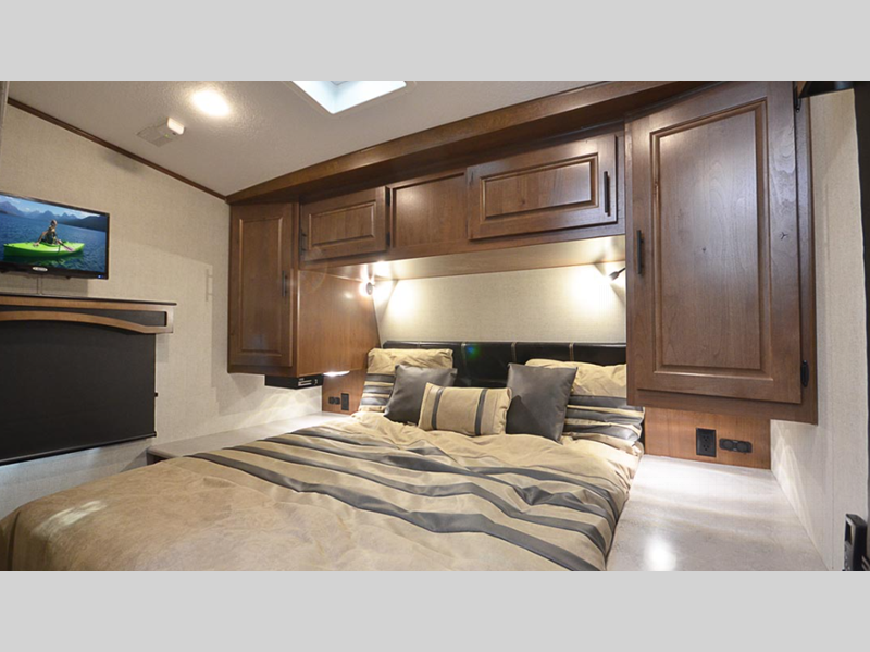 Sleeps 6 Length 33 ft 2 in Ext Width 8 ft 4 in Ext Height 13 ft 2 in Interior Color Black Diamond Hitch Weight 1450 lbs GVWR 13995 lbs Dry Weight 9880 lbs Cargo Capacity 4595 lbs Fresh Water Capacity 100 gals Grey Water Capacity 65 gals Black Water Capacity 40 gals Tire Size LT235/85/16G Furnace BTU 35000 btu Generator Cummins Onan 4K On-Board Gas Fuel Capacity 40 gals Number Of Bunks 1 Available Beds Queen Refrigerator Type Off Grid 12V Refrigerator Size 10 cu ft Number of Awnings 1 Axle Weight 6800 lbs Garage Size 10 ft 10 in LP Tank Capacity 60 lbs Water Heater Capacity 10 gal Water Heater Type LP/110V DSI AC BTU 15000 btu TV Info LR 32" LED HDTV Awning Info 20' Electric w/LED Light Strip, Rear Axle Count 2 Shower Type Neo-Angled Electrical Service 30 amp Similar Floorplans