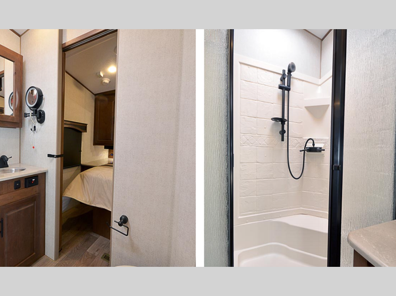 Each model features rear back up lights, a remote camping package, and a wireless rear, side(s) turn camera system for hassle-free parking. Inside, you'll find LG solid surface countertops, an upgraded high-rise kitchen faucet, a premium memory foam mattress, and many more comforts!