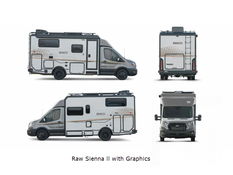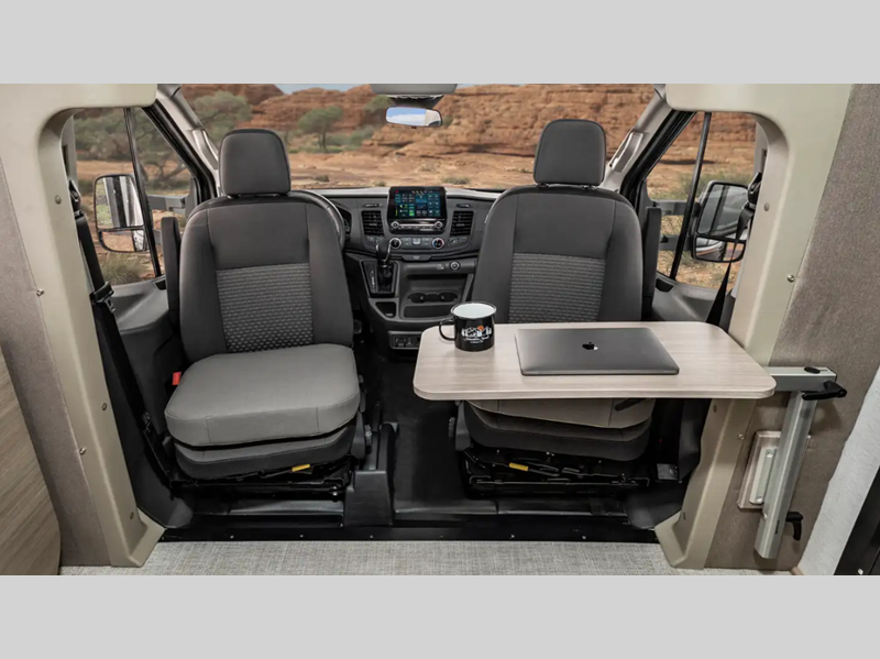 Sleeps 2 Length 23 ft Ext Width 7 ft 3 in Ext Height 10 ft 6 in Int Height 6 ft 8 in Interior Color Veredis, Juniper Exterior Color Raw Sienna ll, Raw Sienna ll with Graphics, Verdant ll, Verdant ll with Graphics Hitch Weight 5000 lbs GVWR 11000 lbs Fresh Water Capacity 50 gals Grey Water Capacity 51 gals Generator 2,800W Gas Fuel Type Gasoline Engine 3.5L EcoBoost V6 Chassis Ford AWD Transit Fuel Capacity 31 gals Wheelbase 156 in Available Beds Two Twin Refrigerator Type Single Door Compressor Driven 12V Refrigerator Size 5.3 cu ft Cooktop Burners 2 Shower Size 24" x 30" Number of Awnings 1 Axle Weight Front 4630 lbs Axle Weight Rear 7275 lbs LP Tank Capacity 40 lbs Water Heater Type Truma AquaGo Tankless Comfort Plus AC BTU 13500 btu Basement Storage 65.3 cu. ft. Awning Info 13' Power with LED Lighting and Bluetooth Control Gross Combined Weight 15000 lbs Shower Type Wet/Bath Shower Electrical Service 30 amp Similar Floorplans