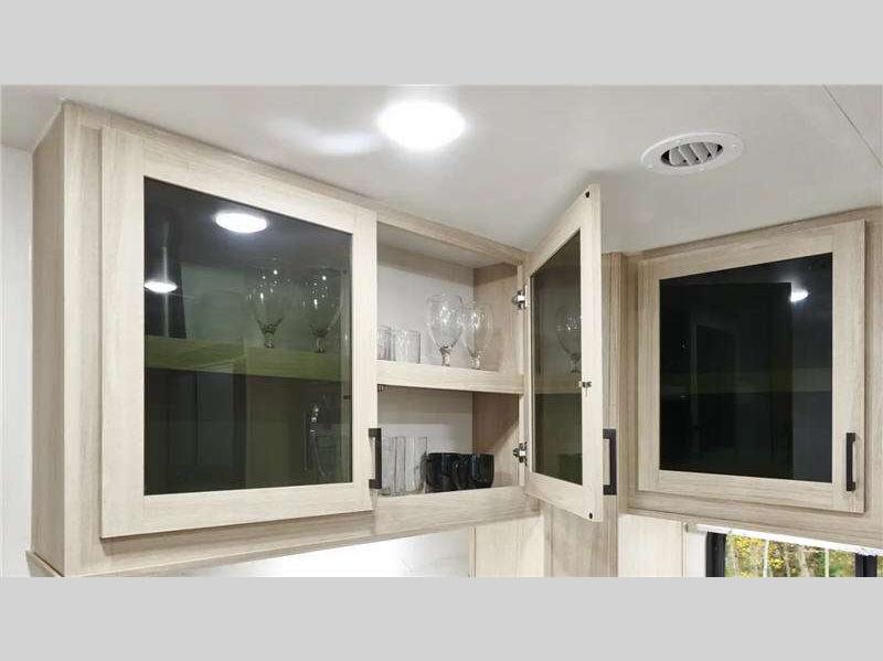Each is built on a NXG engineered frame with a painted gel coat fiberglass front cap with integrated LED lighting, 2" thick FILON® MAX fiberglass exterior sidewalls with Azdel, and a one-piece TPO roof membrane. The universal enclosed docking station makes for easy hookup to cords and connections at every stop, and the LED exterior lighting including backup lights and blinking cap lights enhance safety. The interior offers durable maximum linoleum and pressed type countertops throughout, and ductless flooring with heat to front pass-through compartment, plus residential panel cabinet doors and drawer fronts for style, solid core cabinet stiles and ball bearing full extension drawer guides in the galley.