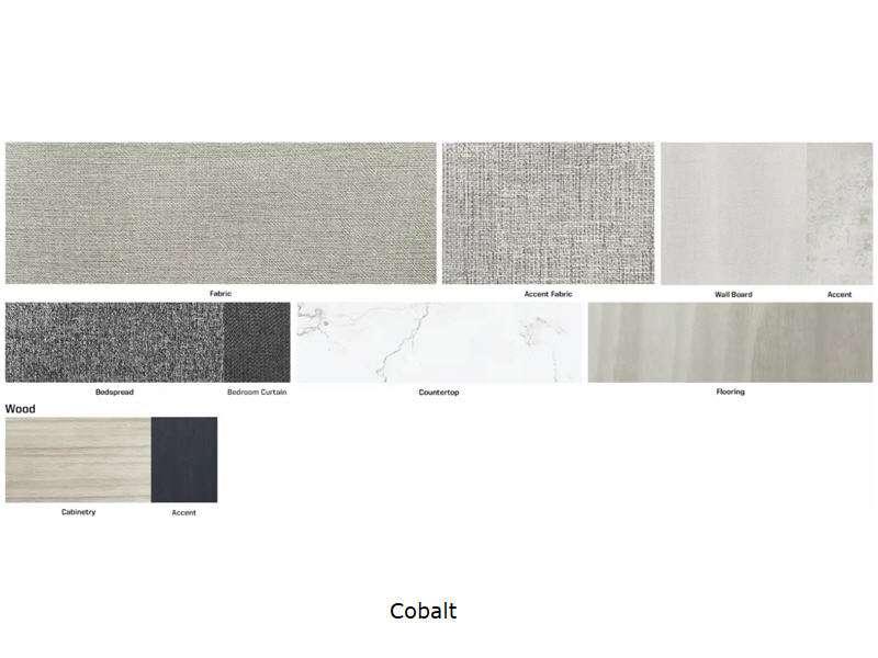 Sleeps 4 Slides 2 Length 31 ft Ext Width 8 ft Ext Height 11 ft 5 in Int Height 7 ft Interior Color Cobalt Exterior Color White Hitch Weight 826 lbs GVWR 10400 lbs Dry Weight 7479 lbs Fresh Water Capacity 60 gals Grey Water Capacity 49 gals Black Water Capacity 49 gals Tire Size 225/75R15E Furnace BTU 30000 btu Available Beds Queen Refrigerator Type 12V Refrigerator Size 15 cu ft Convection Cooking Yes Cooktop Burners 3 Shower Size 30" x 36" Number of Awnings 1 Axle Weight 5200 lbs LP Tank Capacity 30 lbs Water Heater Capacity 10 gal AC BTU 15000 btu TV Info LR Smart TV Awning Info 13' Electric w/LED Lighting Axle Count 2 Number of LP Tanks 2 Shower Type Standard Electrical Service 50 amp Similar Floorplans